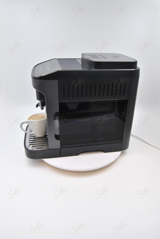 • Piešķiriet savai virtuvei stila pieskārienu ar šo eleganto melnpelēko kafijas automātu